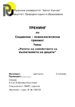 Ролята на семейството за възпитанието на децата. Представяне и запознаване с участниците в тренинга. Очаквания и желания на участниците. Психо-техническа игра “Спомени от детството“...