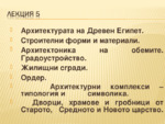 Лекция за архитектурата на древен Египет, заедно със схеми и снимки, илюсртиращи дадените примери...