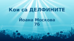 Описва характеристиката, развитието и живота на делфините не само в България...
