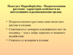 Покритосеменни растения – характерни особености на вегетативните и размножителни органи. Покритосеменните растения единствени имат цветове и плодове...