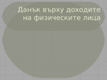 Данък върху доходите на физическите лица - правна характеристика, данъчно задължени лица, облагаем и необлагаем доход, данъчна основа и ставка, деклариране...