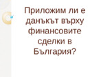 Приложим ли е данъкът върху финансовите сделки в България?