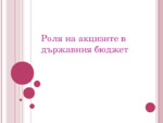 В презентацията е разгледана ролята на акцизите като косвени данъци в държавния бюджет и ставките на данъка за отделните видове акцизни стоки. На база на информацията от презентацията може да се структурира и доклад на същата тема...