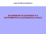 Презентацията разглежда възникването на държавната власт и нейното легитимиране...