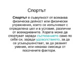 Това е презентация за спорта. В нея се разказва за различните видове спорт...