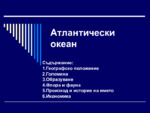 Атлантическият океан е разположен между Северна и Южна Америка на запад, Европа и Африка на изток. Свързан е с Тихия океан на югозапад, Индийския океан на югоизток и Северния ледовит океан на север. Океанът има формата на буквата S...