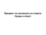 Предмет на хигиената на спорта. Среда и спорт