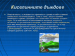 Киселинните дъждове - енергетиката, основана на химически горива е най–големият замърсител на атмосферата...