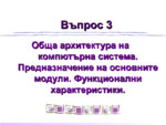 Обща архитектура на компютърна система. Предназначение на основните модули. Функционални характеристики.