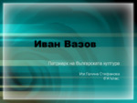 Иван Минчов Вазов е класически български писател, наричан често „патриарх на българската литература“. Творчеството на Вазов е отражение на две исторически епохи...