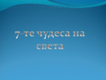 Великата китайска стена. Град Петра в Йордания. Статуята на Христос Спасител в Бразилия. Мачу Пикчу в Перу. Чичен Ица в Мексико. Колизеумът в Рим. Тадж Махал в Индия...