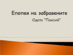 Одата "Паисий" като част от Епопея на забравените - причината на написването и подпобно тълкуване на нейната композиция и мотиви....