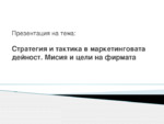 Стратегия и тактика в маркетинговата дейност. Мисия и цели на фирмата.