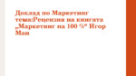 Презентация над книгата "Маркетинг на 100%" от Игор Ман