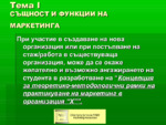 Този материал е въвеждащата част в маркетинга, тук са дадени прости определения за важни понятия от маркетинга, който всеки трябва да знае. Презентацията е на достъпен език.....