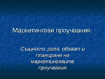 Маркетинговите проучвания са система от дейности, които се провеждат с цел да се установи проявлението и въздействието на пазарните фактори върху реализацията на дадена стока или услуга...