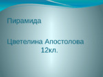 Презентация на тема пирамида от учебен материал за 12 клас. Всички формули и са написани и обяснени в помощ на учениците...