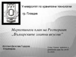 Маркетингов план за ресторант, българска кухня. Ресторантът залага на българските традиции. Ресторантът не е реално съществуващ...