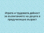 Играта и трудовата дейност за възпитанието на децата в предучилищна възраст