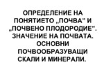 Съвкупността от всички органични съединения, съдържащи се в почвата, се нарича органично вещество. То се състои както от органични остатъци (главно растителни и по-малко други), така и от отделни съединения със специфична и неспецифична природа...