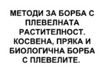 Косвена борба с плевелите. Предпазни мероприятия: използване на абсолютно чист посевен материал; използване на оборски тор, чист от жизнеспособни плевелни семена; навременно прибиране на реколтата...