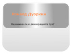 Материалът е анализ на книгата на Роналд Дуоркин - "Възможна ли е демокрацията тук?"...