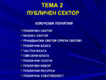 Публичният сектор представлява система от държавни и общински институции, които управляват публичната собственост, осъществяват данъчното облагане, произвеждат и предлагат публични блага за използване от членовете на обществото...