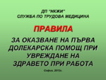 Първа долекарска помощ при наранявания и счупвания, при кръвотечение, при изгаряния (термични и химически), при измръзване...