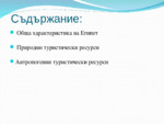 Кратко представяне на антропогенните тупистически ресурси, характеристиката и забележителностите на Египет...