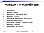 Контрол Button. Контроли Label и LinkLabel. Контрол TextBox. Контроли RadioButton и CheckBox. Контрол RichTextBox. Контроли ListBox и CheckedListBox. Контрол ListView. Контейнер TabControl...