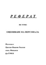 Оценяването на персонал е дейност свързана с набиране на информация за представянето на работниците и служителите в трудовия процес и на базата на тази информация се изготвя становище...