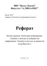 Бизнес процеси. Категории информация. Техники и методи за събиране на информация. Техники и методи за анализ на потребностите