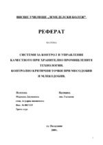 Системи за контрол и управление качеството при хранително промишлените технологии. Контролно критични точки при месодобив и млекодобив