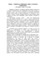 Песен 18 “Илиада”,”изковаване на щита на Ахил”,е втората сцена в омироватият епос,която остава сравнително в страни в сюжетното развитие.необходимостта да бъдат изковани за Ахил,нови доспехи и щит сякаш отваря една пауза във времето,която авторът...