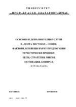 Туристическия продукт или услуга-основен или допълнителен. Особености. Представяне в конкретен хотел. Изложение на мисията и стратегията и съответната мотивация за осъществяването им. Контрол на звената. Фактори влияещи върху тур. предлагане...