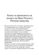 Разказ за пренасянето на мощите на Иван Рилски в Рилския манастир