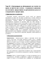 Тема за организацията на обслужването на гостите в хотела по време на престоя им в него, предназначен за държавен зрелостен изпит за изучаващи предмети, свързани с туризма...
