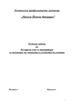 Тестът е предназначен за ученици от 7 клас. Съдържа 10 въпроса по български език. Задачите са от един тип: с четири възможности за отговор, от които само един е верният. Тестът е подходящ за проверка на знания по морфология и синтаксис....