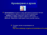 Дава информация за архивиране и архивиращи програми, описва целите им, начините на използване...