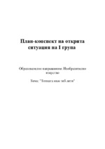 План-конспект на открита ситуация, проведена в I група на детската градина. Образователното направление е "Изобразително изкуство", а темата- "Топката към теб лети"...